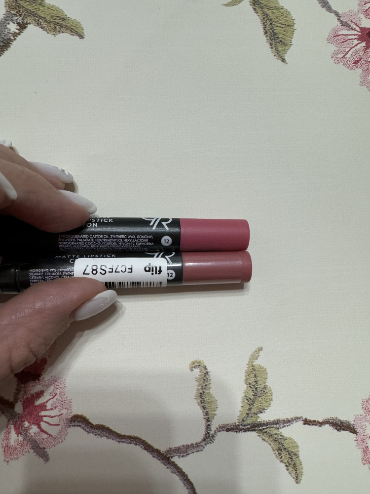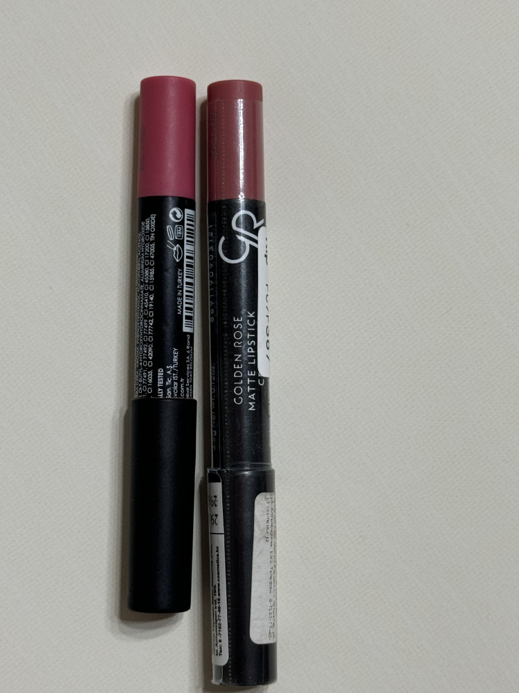 Брала 21 цвет, совпадает. Мне кажется помада не матовая, а кремовая. Забыла указать, на фотке прям супер матовая помада и карандаш-помада, который чуть темнее 21 оттенок из этой серий. Вторая фотка после трения 4 раза мицеллярной водой. Получается для стойкости лучше выбрать Golden Rose Longstay. А в целом, все шикарно. Надеюсь, что отзыв будет полезен, так как сама всегда читаю.