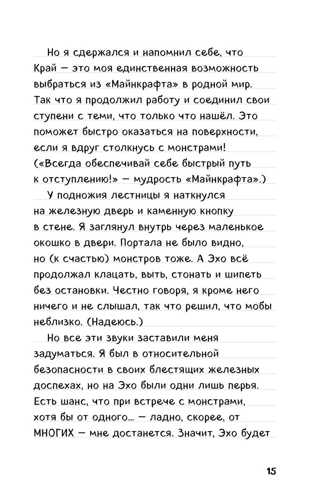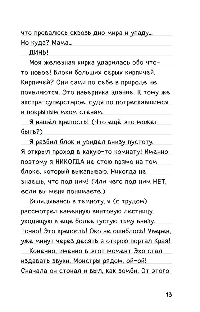 💳 Оплатить за товар можно при получении 🇰🇿 Есть бесплатная доставка по Казахстану от 1 дня 🎁 Копите бонусы с каждой покупки Серия: Майнкрафт. Дневник Стива Стив так долго искал крепость, чтобы найти дорогу домой, но очи Края вдруг перестали работать. Или нет? Оказывается, Стив дошёл до крепости, просто не видел её, потому что она находилась под землёй! Вместе со Стивом читатели отправятся в прямом смысле в глубины «Майнкрафта», будут плутать по коридорам крепости, встретятся с новыми (и старыми) врагами и попытаются заставить портал Края работать... если выживут! |