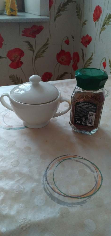 Очень красивая и качественная сахарница, сфоткала с банкой кофе для соотношения размера.
