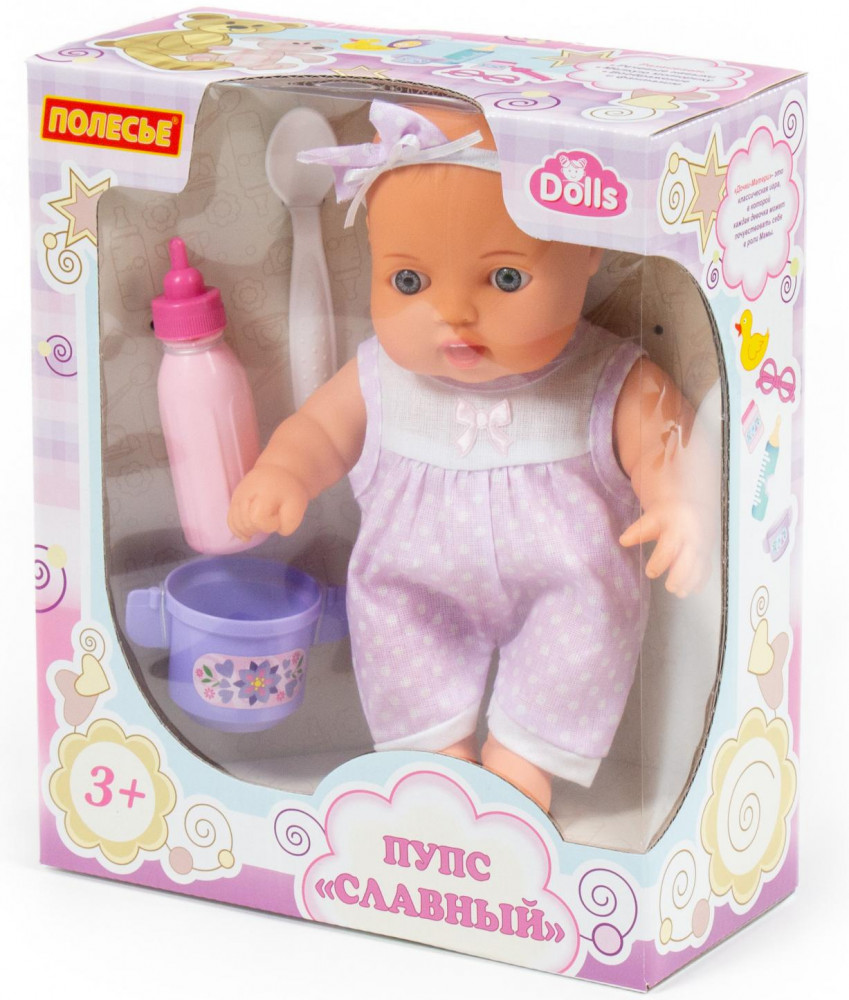 Полесье Пупс с набором для кормленияВ данный момент этот товар отсутствует в продаже. Возможно, у нас найдется аналогичный или похожий товар здесь. Серия: Славный Пупс «Славный» от фабрики «Полесье» обязательно станет постоянным участником сюжетно-ролевых игр малыша. Игрушка выполнена из качественных материалов, имеет набор для кормления, который разнообразит игру, сделает её ещё интереснее и реалистичнее. Реалистичная кукла понравится девочек своим очаровательным личиком с большими глазками, и ярким нарядом. Кукла сделает досуг девочек намного интереснее, и они с удовольствием проявят фантазию, а также возьмут пупса с собой на прогулку. Кукла выглядит очень мило и реалистично, поэтому сразу привлекает внимание детей, а оптимальный размер пупса делает игры с ним более удобными для малышек. |