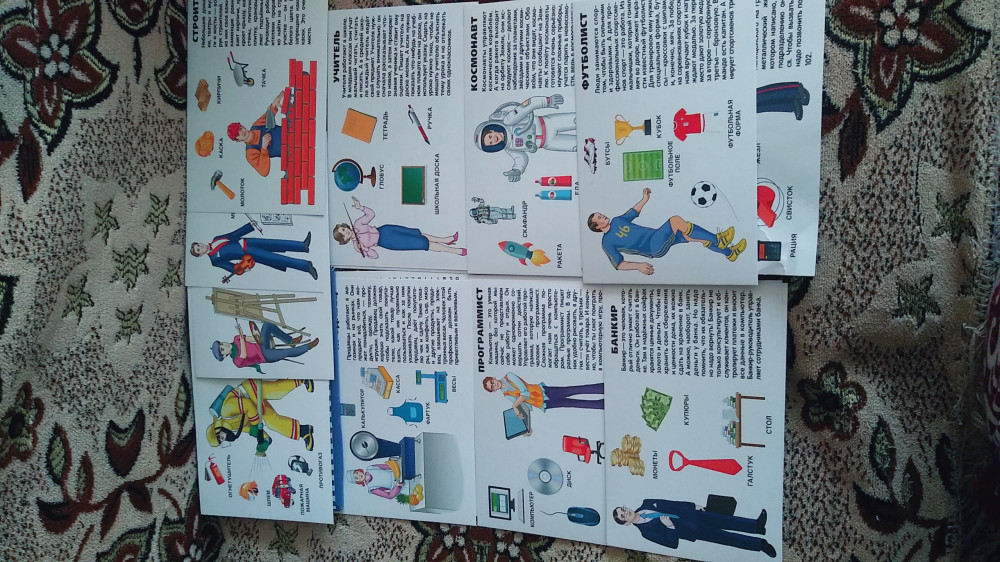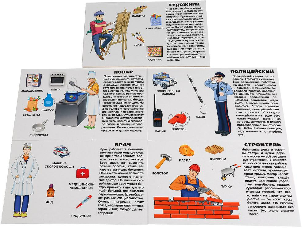 В данный момент этот товар отсутствует в продаже. Возможно, у нас найдется аналогичный или похожий товар здесь. Серия: Карточки в папке Если ваш малыш уже начал выбирать для себя будущую профессию, то эти карточки с красочными иллюстрациями станут для него лучшими помощниками. Ведь теперь кроха будет знать, чем занимается полицейский, какая сложная работа у строителя и какая важная профессия у врача.