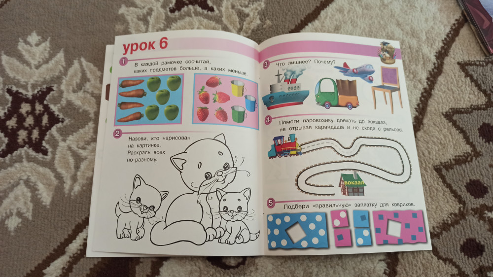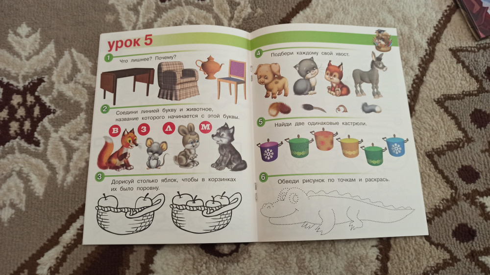 Классная тетрадка. Она маленькая по формату (реально как тетрадка), но задания очень хорошие и красочные. Дочка выполняет с удовольствием. Вчера носила во двор, так делали всем двором :)