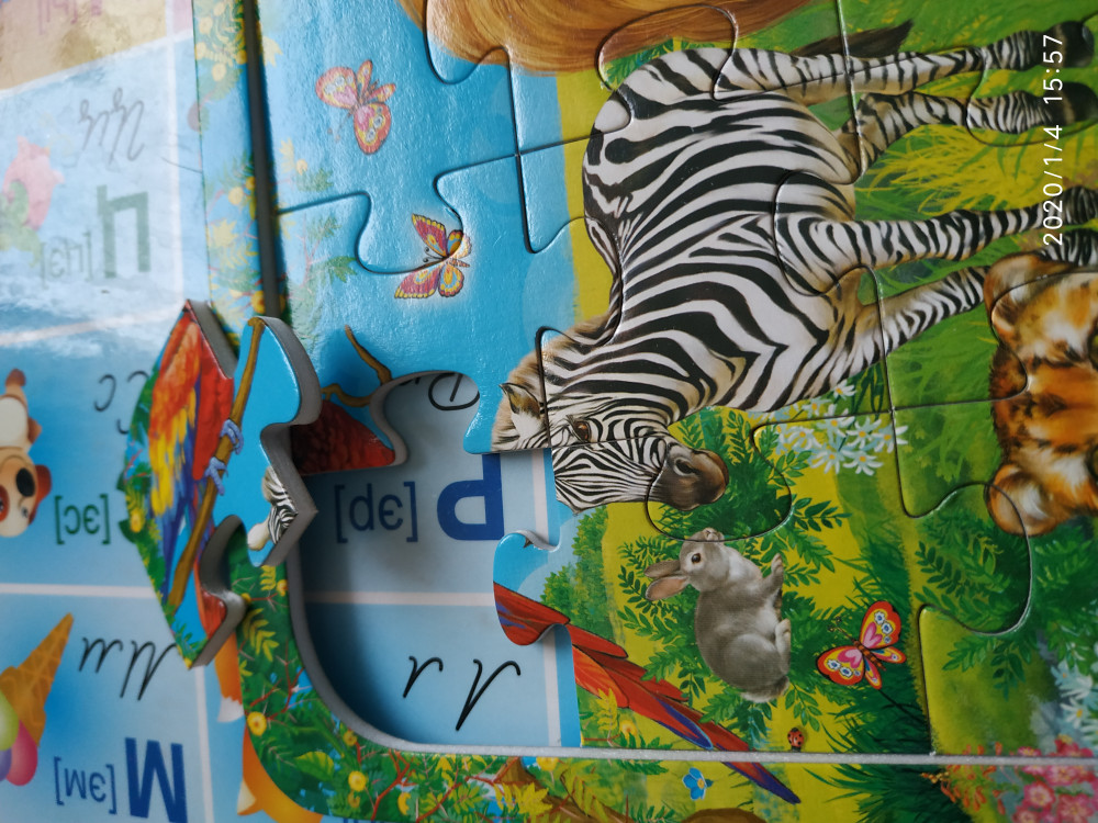 Хороший пазл. Ребенку 3 года, пытается собрать, интересная картинка, т.к. мы любим животных.