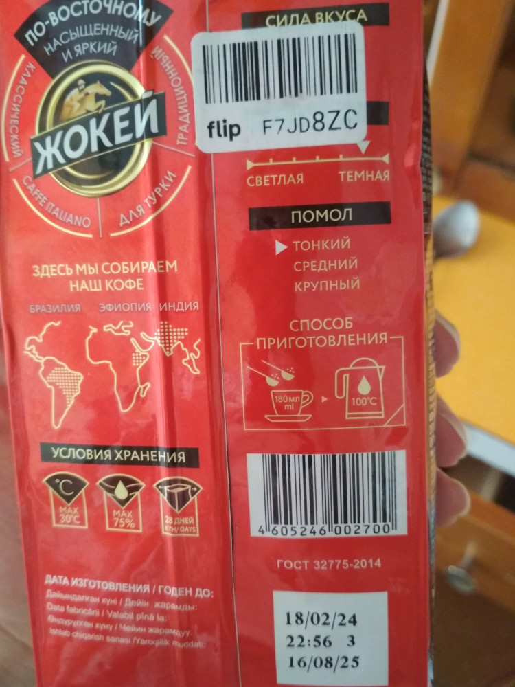 Кофе Жокей Артикул 0772-24 (брала на Флип) действительно мелкого помола, а этот кофе среднего помола. А где написано: средний помол, то он крупного помола. брала здесь разные. Но это к производителям. Флипу же огромное спасибо за быструю и качественную доставку.