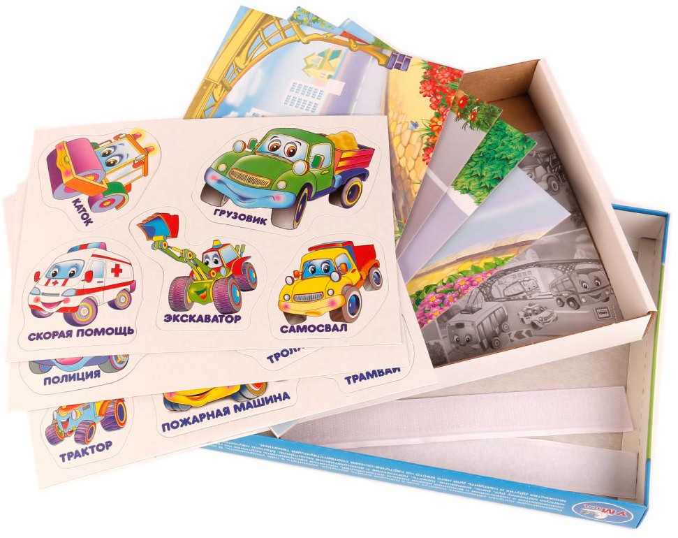 УМка Игра развивающая с липучками «Машинки»-30% +78 плотный картон липучки прочность интересная задумка мало полей