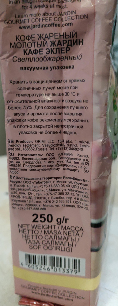 Jardin Кофе «Cafe eclair»+146 мягкий вкус ароматный не горчит помол средний герметичная упаковка умеренная крепость