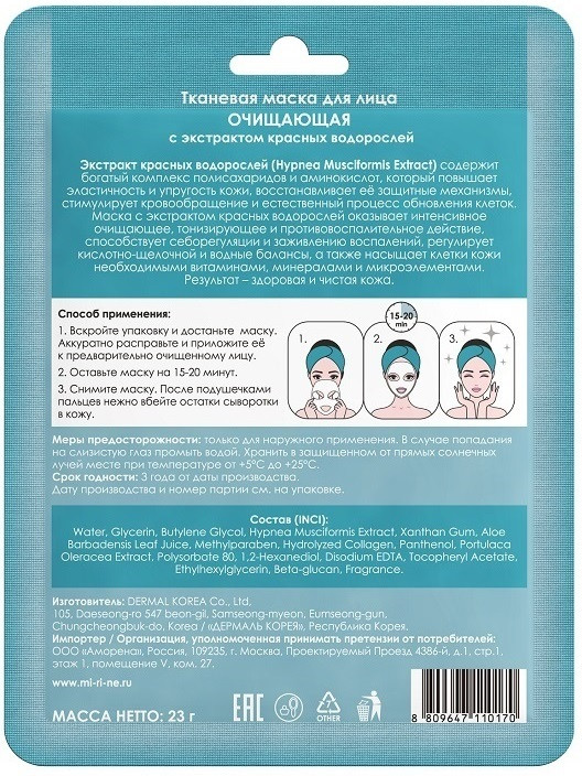 Mi-Ri-Ne Маска для лица тканевая очиющающая с экстрактом красных водорослей