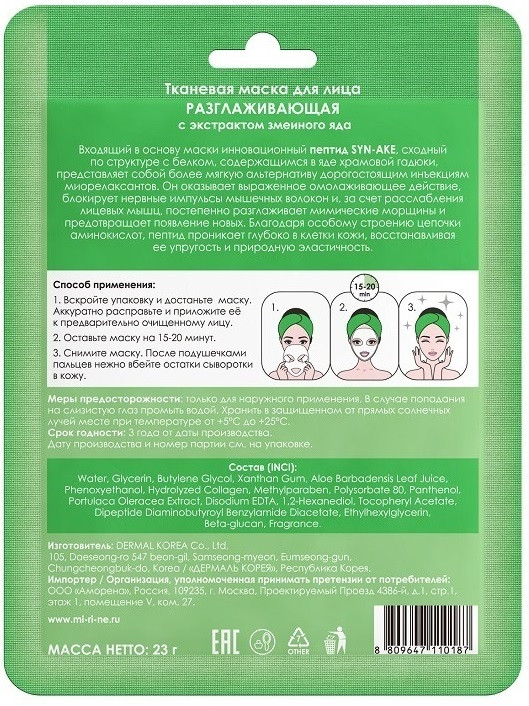 Отзывы «Маска для лица тканевая разглаживающая с экстрактом змеиного яда»