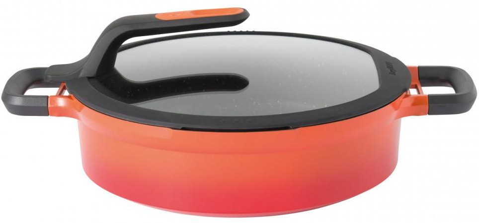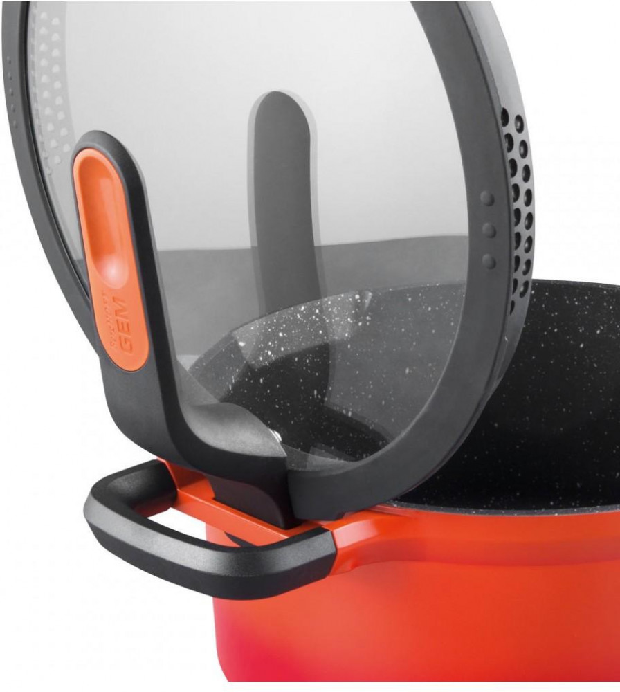 Прочный корпус из литого алюминия отлично распределяет тепло, равномерно по всей поверхности. Высококачественное многослойное антипригарное покрытие позволяет готовить с пользой для здоровья на минимальном количестве масла. Полное дно 18/0 оптимально для приготовления на индукционных плитах, а также для любых других видов плит. Ненагревающаяся ручка обеспечит безопасный и удобный захват. Носик и специальные отверстия на ободке крышки делают удобным слив. Благодаря силиконовому ободку на крышке вы не обожжётесь в момент слива, таким образом вам не нужны прихватки. Благодаря продуманной конструкции крышку можно установить вертикально на корпусе кастрюли, таким образом, у вас всегда свободна одна рука для перемешивания и подачи.