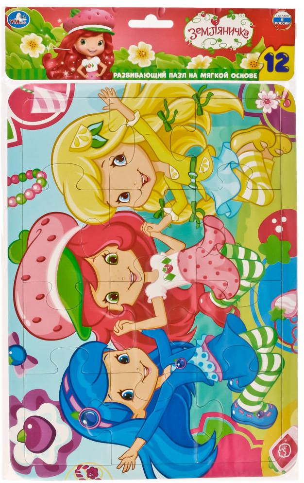 Развивающий пазл «Земляничка» состоит из 12 деталей и подойдёт самым маленьким деткам. Для того, чтобы ребёнку было удобнее его собирать, в комплект добавлена специальная рамка. Пазл создан по мотивам мультфильма «Шарлотта Земляника: Ягодная история». Детали выполнены из твердого картона, рисунок яркий и насыщенный. В процессе сбора картинки у ребёнка развивается внимание, память, образное и пространственное мышление.