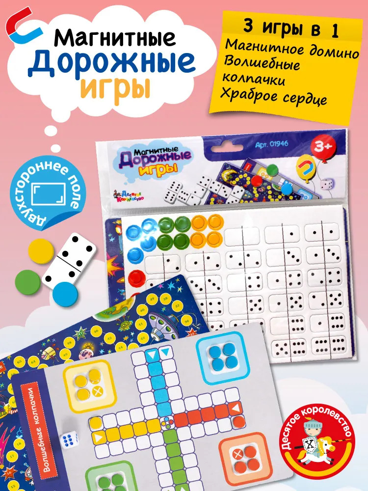 Свойства этого игрового набора позволяют играть в любых условиях: в дороге, на отдыхе, в любом месте! Три простые магнитные игры: домино, волшебные колпачки, храброе сердце понравятся Вашему малышу от 3-х лет, помогут скрасить досуг, интересно и содержательно провести время. Играть в домино можно на любой гладкой металлической поверхности или использовать прилагаемое двухстороннее магнитное игровое поле. Правила игры стандартные.