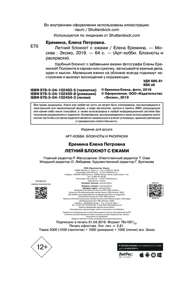 Блокнот для людей и ежей (ромашки)В данный момент этот товар отсутствует в продаже. Возможно, у нас найдется аналогичный или похожий товар здесь. Серия: Арт-хобби. Блокноты и раскраски Удобный блокнот с забавными ежами фотографа Елены Ерёминой! Положите в карман или сумочку, записывайте важные дела, идеи и мысли. Маленькие ежики на обложке всегда поднимут настроение и вызовут восхищение у окружающих. |