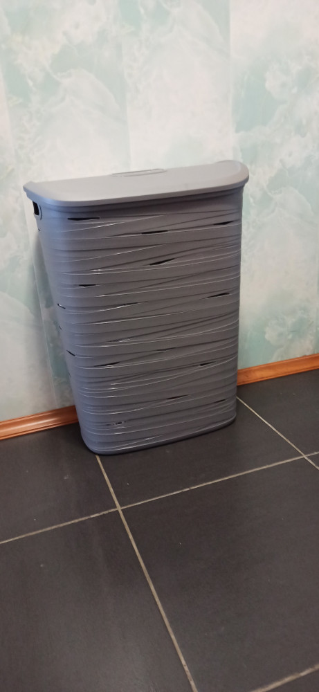 Оказалось, что по размеру больше чем ожидалось! Пластик хороший. Крышка отдельно закрывает емкость. Т.е. не «приварен» к корзине. Под крышкой есть крючки, которые можно зацепить на саму корзину, когда будете класть или доставать белье. Товар куплен сегодня. В эксплуатации видно будет какой товар. Цвет очень приятный.