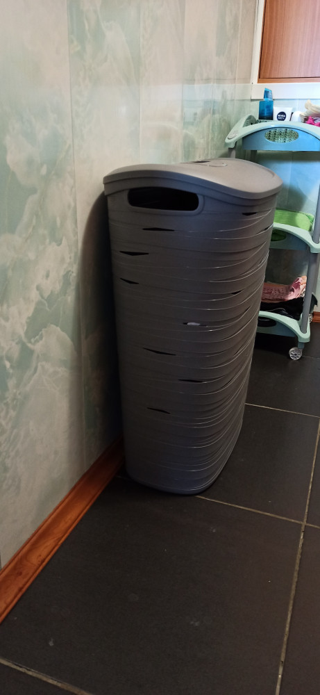 Отличная корзина, пластик качественный, цвет немного светлее, чем на фото, но мне даже больше нравится) с виду небольшая и узкая, но очень вместительная ;) рекомендую!