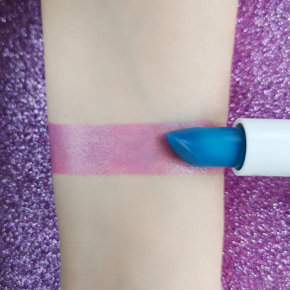 Хороший бальзам, на светлых губах светло сиреневый цвет, конечно не такой насыщенный как на фото,если темные губы, то будет синеватый цвет.