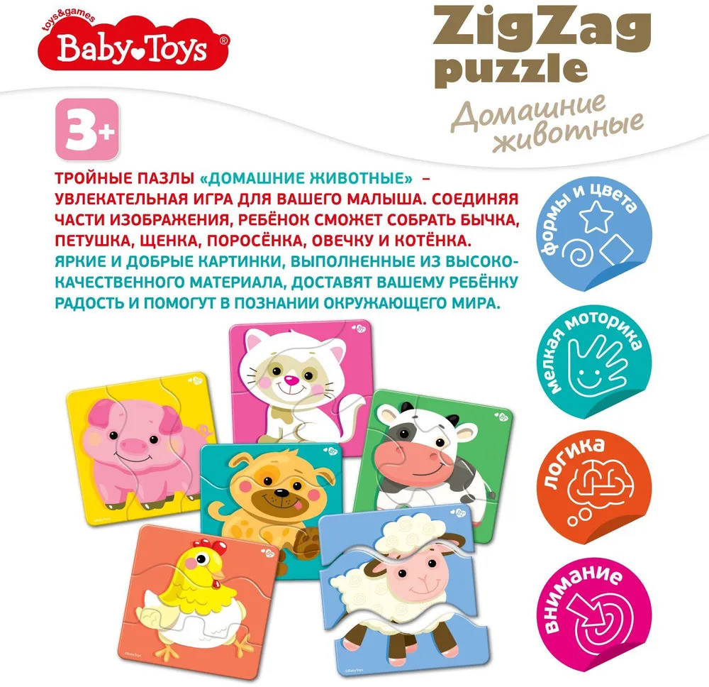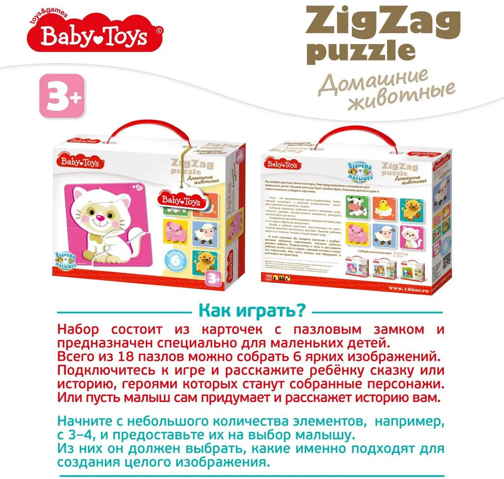 💳 Оплатить за товар можно при получении 🇰🇿 Есть бесплатная доставка по Казахстану от 1 дня 🎁 Копите бонусы с каждой покупки Серия: ZigZag puzzle Данные большие пазлы — отличная возможность для первого знакомства ребенка с этой увлекательной логической игрой. Вместо привычных пазов малыша ждут зигзагообразные стыки, разобраться с которыми ему покажется гораздо проще, чем с классическими. |
