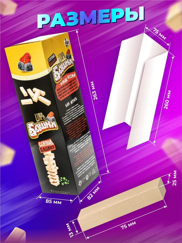 💳 Оплатить за товар можно при получении 🇰🇿 Есть бесплатная доставка по Казахстану от 1 дня 🎁 Копите бонусы с каждой покупки Представляем игру для настоящих богатырей! Только от Вашей сноровки и смекалки зависит, выстоит ли осаду эта «Царь башня». Из брусков надо сложить ровную башню, используя специальный уголок, входящий в комплект игры. Каждый игрок, в свою очередь, вынимает из башни один брусок, причем это нужно делать одной рукой. Этот брусок, оказавшийся в руках игрока, укладывается на новый, верхний этаж сооружения. Все действия выполняются участником так, чтобы башня из брусков не рухнула! Виновник катастрофы считается проигравшим! Игрокам для победы потребуется не только сноровка, но и умение логически размышлять. Везение и ловкость помогут выстроить игрокам башню вдвое большей высоты. |