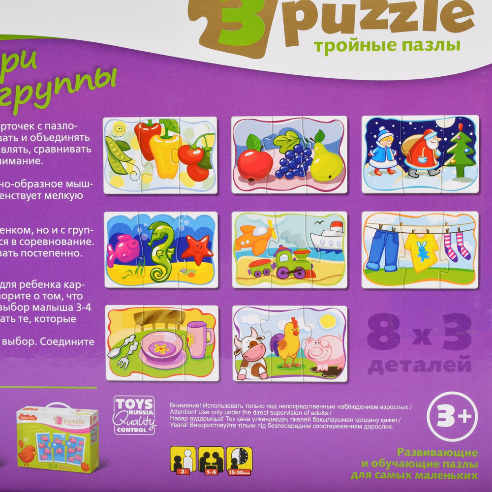 В данный момент этот товар отсутствует в продаже. Возможно, у нас найдется аналогичный или похожий товар здесь. Серия: Тройные пазлы Все элементы пазлов из этого набора надо разделить по группам и соединить между собой, чтобы получилась правильная логическая цепочка. Но для выполнения задания крохам потребуется не только внимательность и смекалка, а еще и хорошая эрудиция.