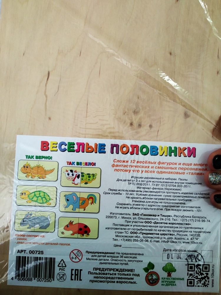 💳 Оплатить за товар можно при получении 🇰🇿 Есть бесплатная доставка по Казахстану от 1 дня 🎁 Копите бонусы с каждой покупки Пазл деревянный «Веселые половинки» предназначен для детей в возрасте от 3 до 5 лет. Ребенку предлагается сложить 12 веселых фигурок и еще 65 фантастических и смешных персонажей, потому что у всех одинаковые «талии». |