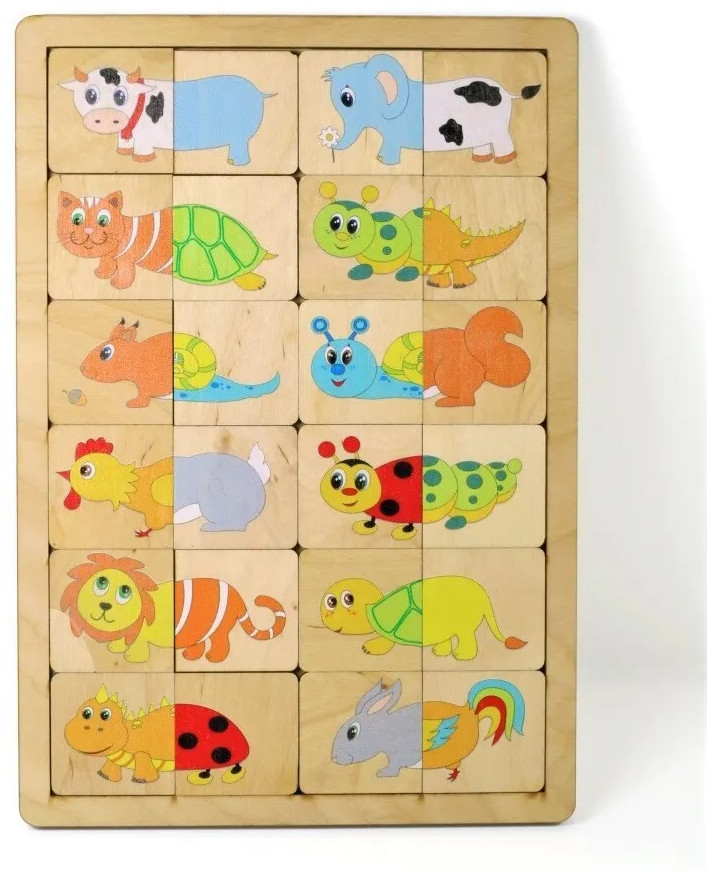 Десятое королевство Пазл деревянный «Веселые половинки»-25% +73 яркие картинки качественный материал подходит малышам развивающая