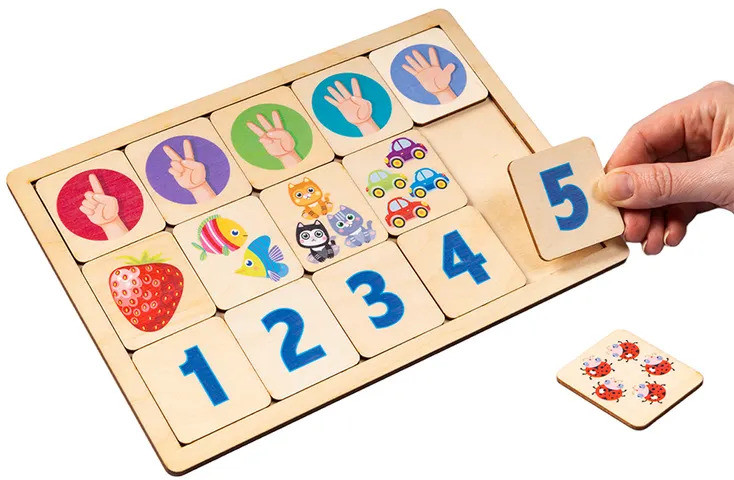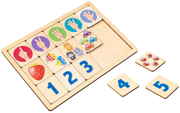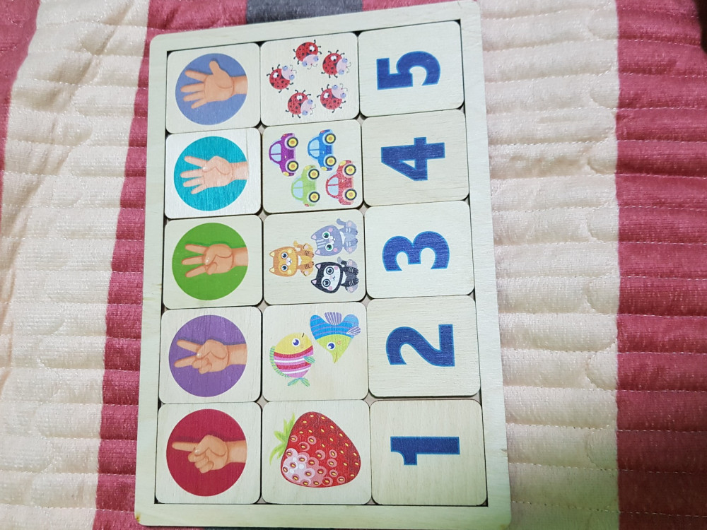 Хотела взять времена года, но решила сначала на счет. Немного рановато. Ребенок очень любит деревянные вкладыши. Пока с помощью собираем.