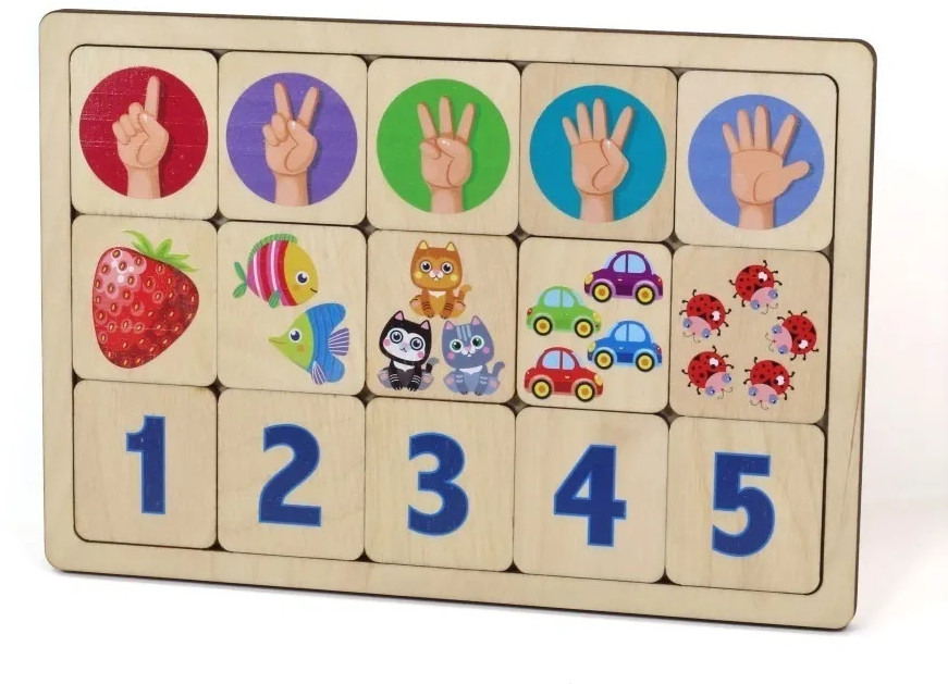 Десятое королевство Пазл деревянный «Считаем до пяти»качественная доска красивые рисунки обработка краёв деревянные вкладыши В данный момент этот товар отсутствует в продаже. Возможно, у нас найдется аналогичный или похожий товар здесь. Раз-два-три-четыре-пять! Учите малыша счёту. Игра деревянные развивающие пазлы «Считаем до пяти» создана с учётом психологии и восприятия самых маленьких. |
