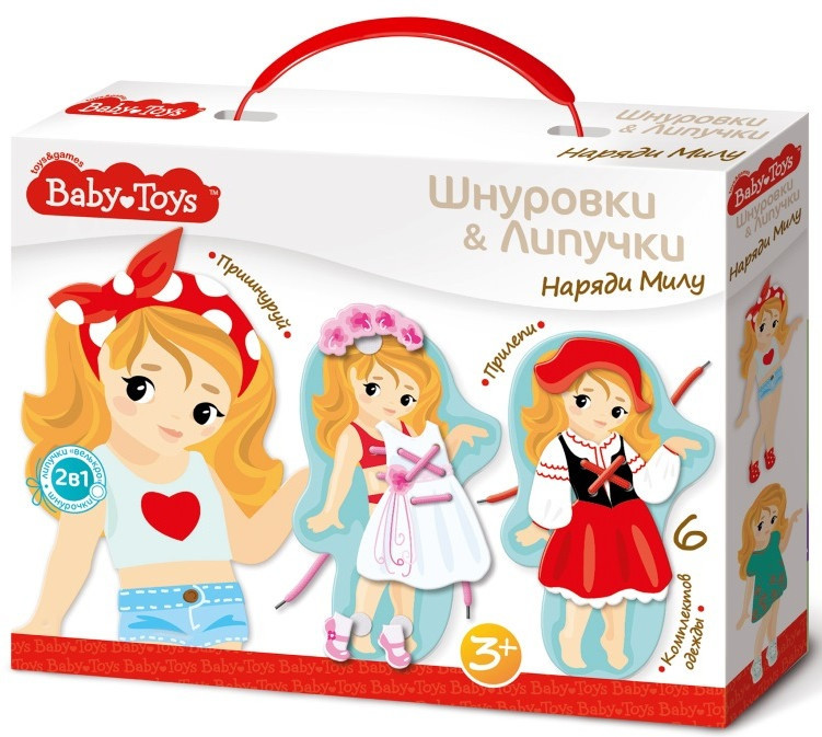 Baby Toys Игра развивающая «Наряди Милу»В данный момент этот товар отсутствует в продаже. Возможно, у нас найдется аналогичный или похожий товар здесь. Серия: Шнуровки и липучки Нарядите куклу Милу вместе с малышом: выберите один из 6 комплектов одежды и обуви и прикрепите элементы к карточке с помощью соединения липучками или пришнуруйте. Главное предназначение игры — развитие мелкой моторики малыша. Сочетание шнуровки и липучек удваивает эффективность тренажера. Оба упражнения улучшают координацию, тренируют точные движения кисти руки, развивают ловкость. |