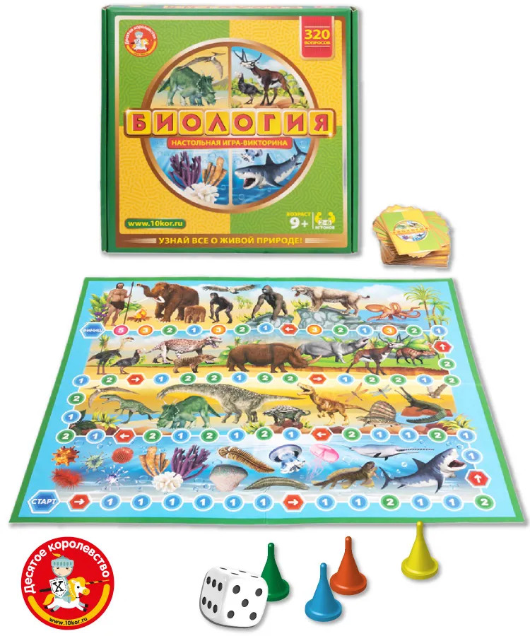 💳 Оплатить за товар можно при получении 🇰🇿 Есть бесплатная доставка по Казахстану от 1 дня 🎁 Копите бонусы с каждой покупки Узнай все о живой природе с настольной игрой-викториной «Биология». В этой увлекательной интеллектуальной игре участникам предстоит эволюционировать из простейших одноклеточных организмов в современного человека. Игроки смогут блеснуть своими знаниями в области ботаники, зоологии и анатомии, сделать удивительные открытия и узнать для себя много нового. Игра предназначена для любознательных детей и взрослых. |