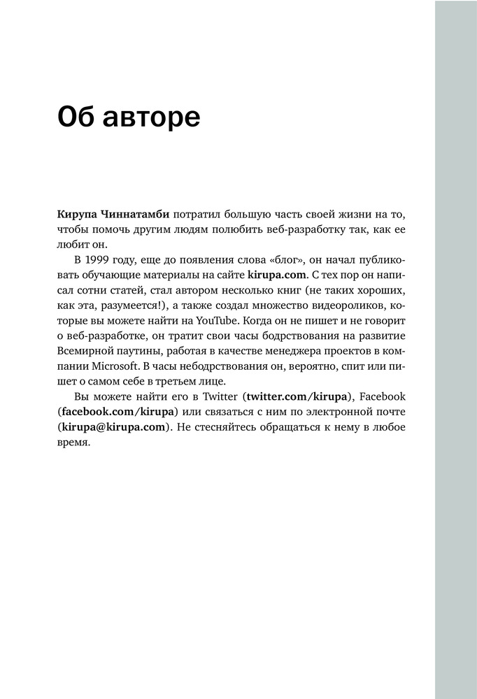 Второе, обновленное, издание снискавшей множество положительных отзывов на Amazon книги известного преподавателя основ веб-разработки, автора обучающего Youtube-канала Кирупы Чиннатамби. Эта книга позволит вам освоить разработку современных веб-приложений с использованием React и Redux. До выхода этой книги считалось, что освоить React самостоятельно, да еще и новичку, практически невозможно. Однако благодаря свежему взгляду и легкому стилю изложения автора этой книги, сотни веб-разработчиков по всему миру признали, что освоили тему легко и быстро. На то, чтобы приступить к созданию первых собственных приложений на React вам потребуется буквально несколько минут чтения. Дерзайте! |