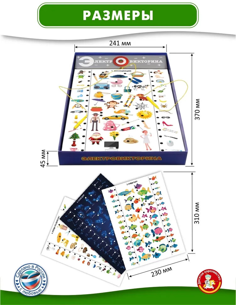 Задумка хорошая, исполнение на троечку с минусом. Основа сделана из тонкого картона, рабочие карточки вообще из очень тонкой бумаги. Блок для батареек еле открыли, потом еле закрыли - резьба сорвана. Какое-то все как понарошку. С учетом того, что маленькие дети еще не очень аккуратные, такое изделие - одноразовое. И за такие деньги. 500 тенге - красная цена ему.