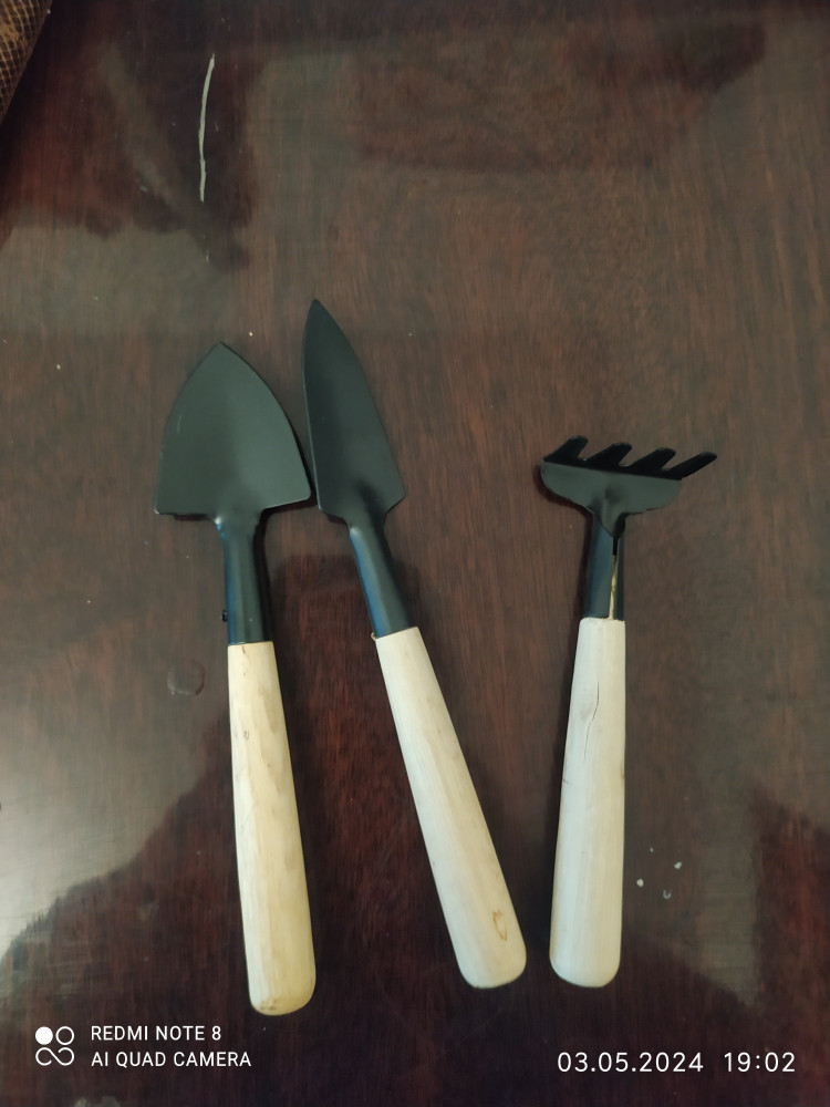 Приобрела для ухода за комнатными растениями инструменты. Очень довольная. То что надо мне. Маленькие и удобные. Ручки деревянные. Спасибо flip