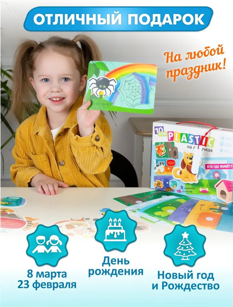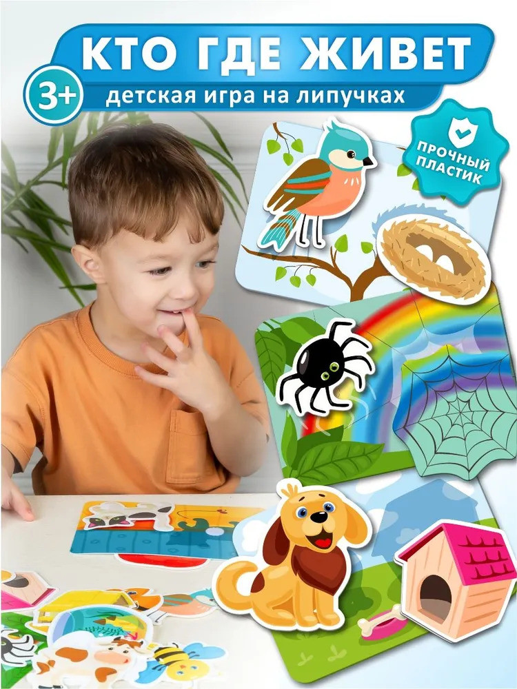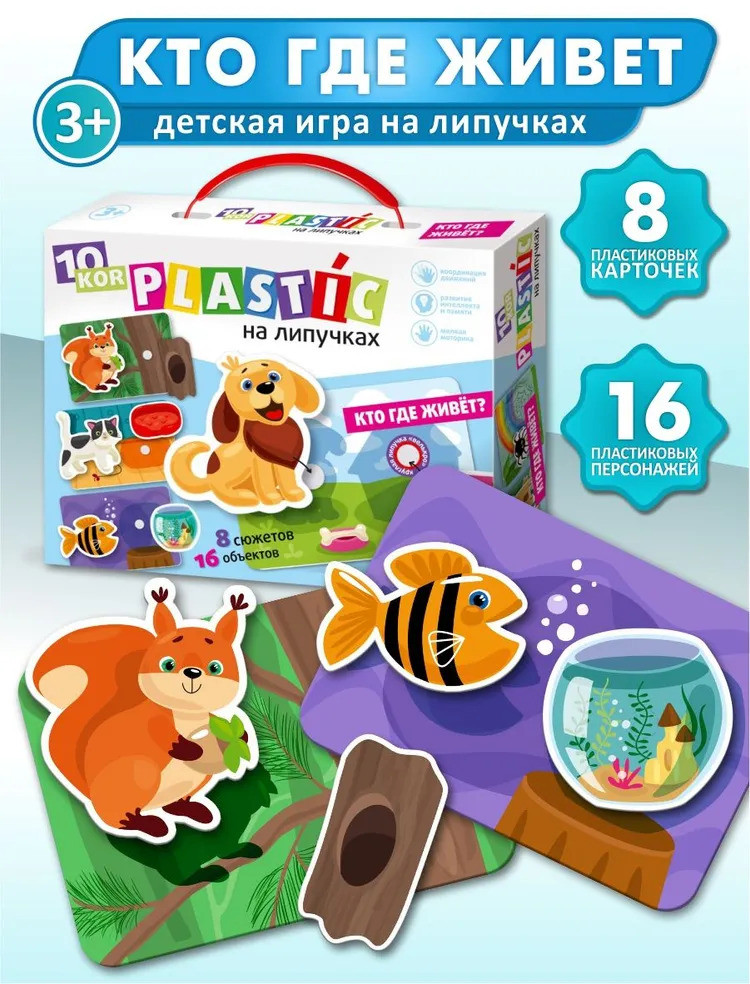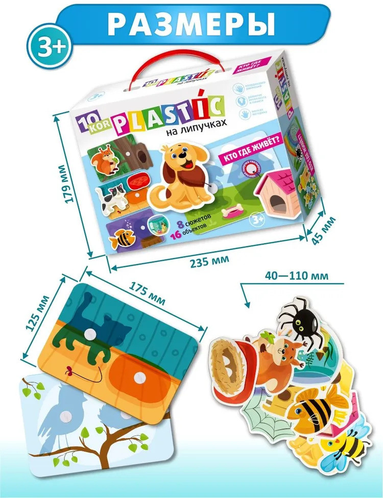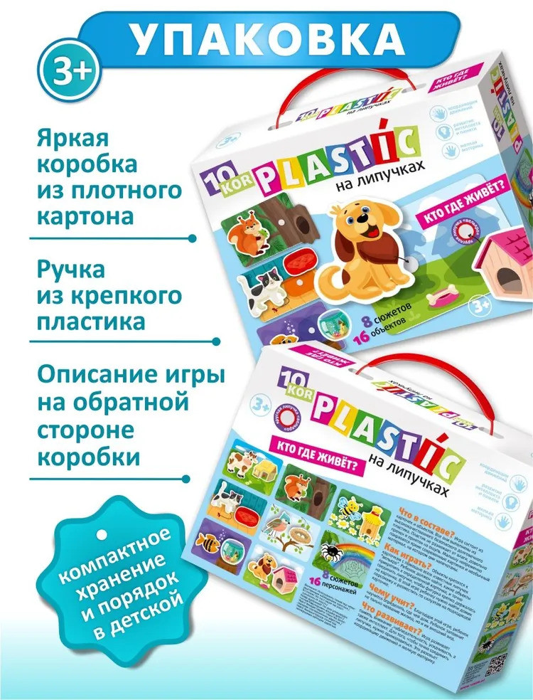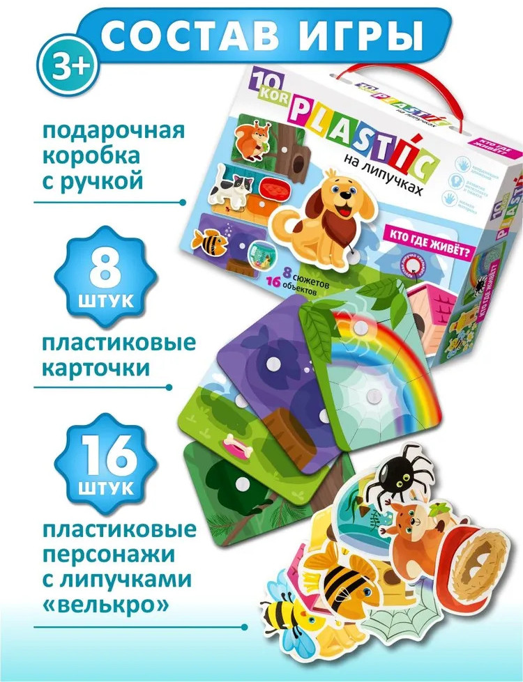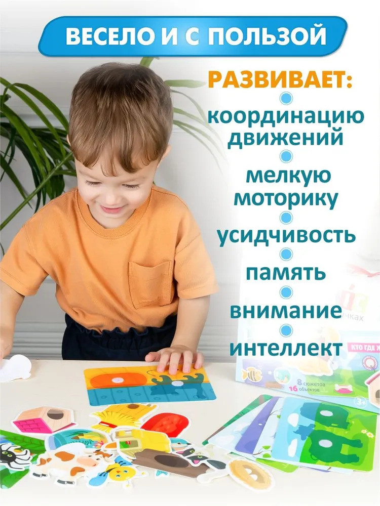 Десятое королевство Пазл на липучках «Кто где живет?»-35% +84 яркие картинки твердые детали качественный пластик подходит детям