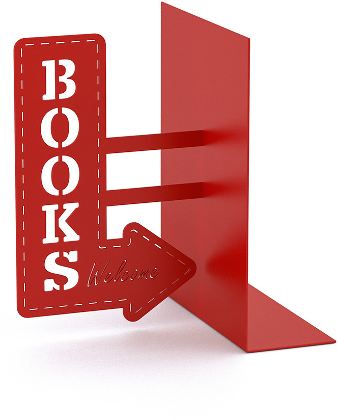 Великолепным подарком для любого книголюба станет этот держатель для книг. Если обычные полки кажутся безликими и неинтересными, тогда стоит обратить внимание на аксессуары из коллекции испанского бренда Balvi. Основным элементом декора является стилизованная стрелка с надписью «Book», указывающая на место хранения. Основная цветовая гамма напоминает стиль разнообразных вывесок 20–30-х гг. Такое оформление подходит для хорошей литературы. Прочная металлическая конструкция, выдерживающая вес нескольких фолиантов. Удобный держатель и простой способ эксплуатации.