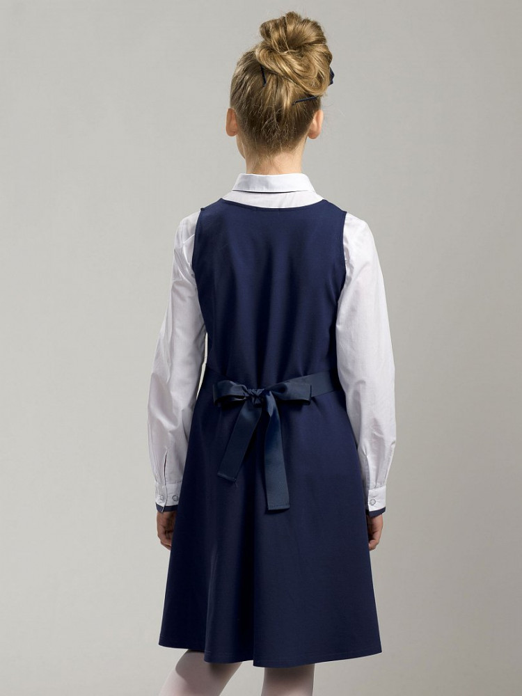 Замечательный школьный сарафан. Сшит качественно, красиво. Моя доченька немножко пухлячок, так он хорошо лежит и немного растягивается. Очень комфортно говорит ей