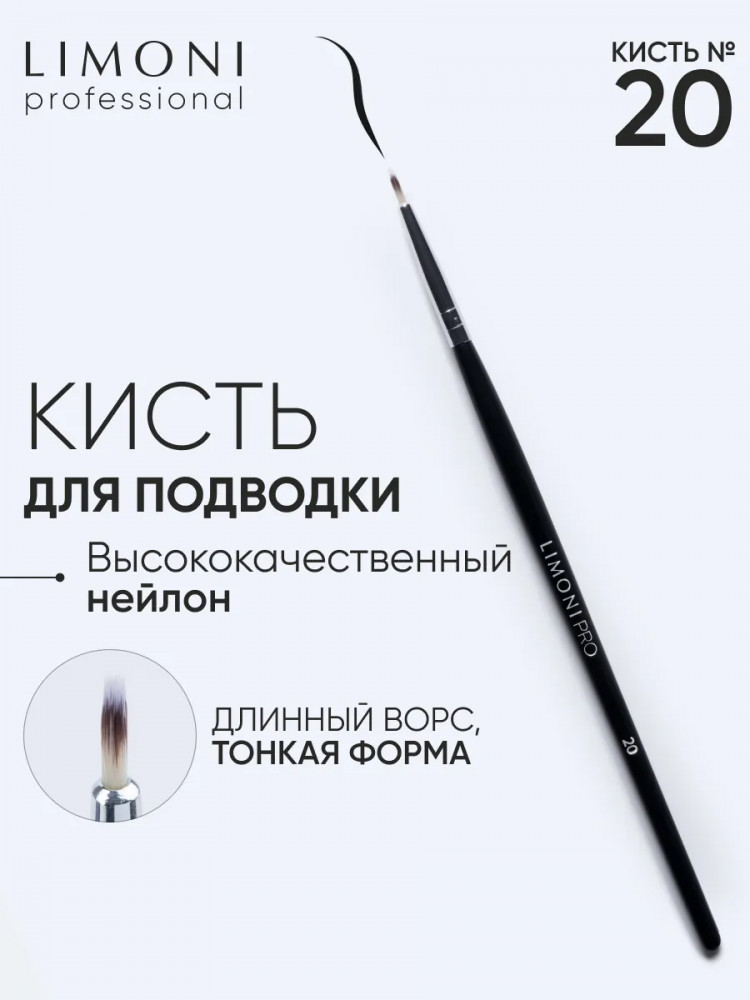 Limoni Кисть для подводки тонкая №20-51% +74 тонкая держит форму мягкая