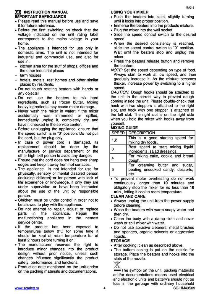 Scarlett Миксер SC-HM40S09В данный момент этот товар отсутствует в продаже. Возможно, у нас найдется аналогичный или похожий товар здесь. Миксер Scarlett SC-HM40S09 — мощный и удобный помощник в приготовлении разнообразных блюд без труда каждый день! Эргономичная ручка прибора не позволит руке устать во время эксплуатации, а специальная насадка для хранения венчиков и крюков для теста облегчит задачу хранения. 5 скоростных режимов справятся с продуктами разной плотности! 2 венчика для взбивания яиц и крема, смешивания жидкостей, 2 крюка для замешивания теста. Кнопка извлечения насадок в одно касание убыстряет работу с миксером! А элегантный чёрный дизайн позволит SC-HM40S09 вписаться в любой интерьер. |