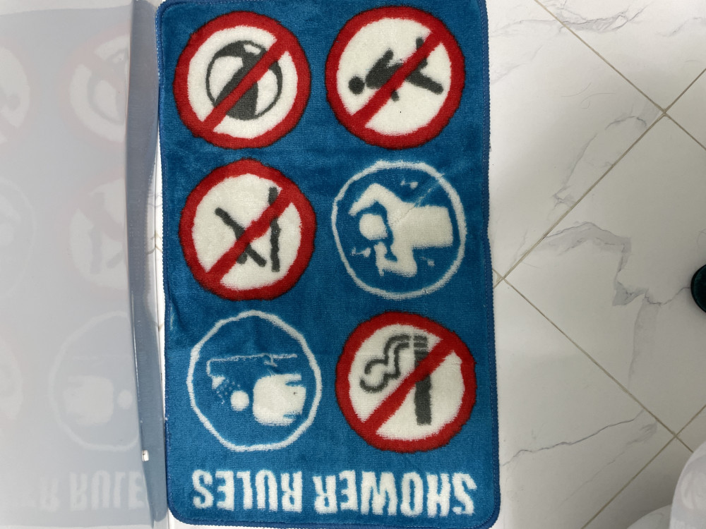 💳 Оплатить за товар можно при получении 🇰🇿 Есть бесплатная доставка по Казахстану от 1 дня 🎁 Копите бонусы с каждой покупки Отличный коврик для ванной, на котором изображены веселые правила пользования душем, понравится всем ценителя отличного юмора и домашнего комфорта. Правила гласят: в ванну не следует нырять, брать с собой мяч, курить и заниматься пробежкой. Однако никто не мешает вам расслабиться и громко исполнить любимые песни. Коврик оживит интерьер любой ванной комнаты и прекрасно справится с впитыванием лишней влаги с ваших стоп после принятия бодрящего душа. Плюс ко всему, ваши гости по достоинству оценят ваше чувство юмора. |