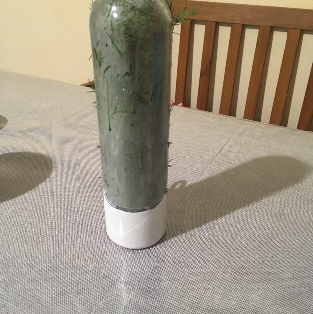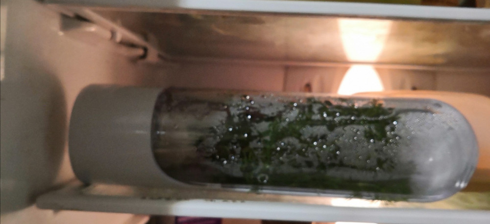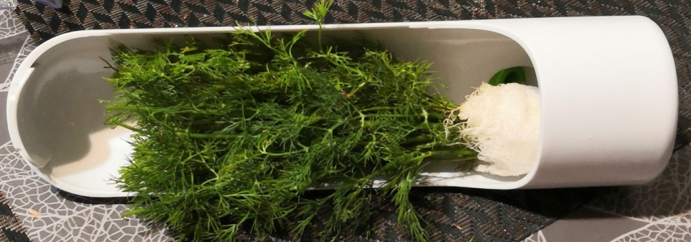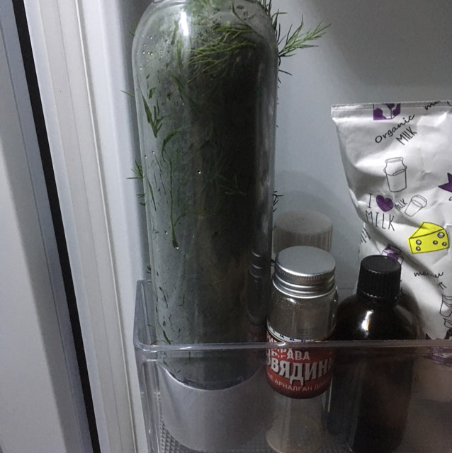 Просто поставить на полку или в дверцу холодильника не очень удобно, если внутри вода, без воды хранить не пробовала... Влажную марлю в 3-4 сложения обернула вокруг пучка укропа, закрепила резиночкой, уложила в контейнер и положила на полочку горизонтально - не подтекает вода, оптимально занимает место. Неделю свежая зелень, дольше и не надо - входит маленький пучок