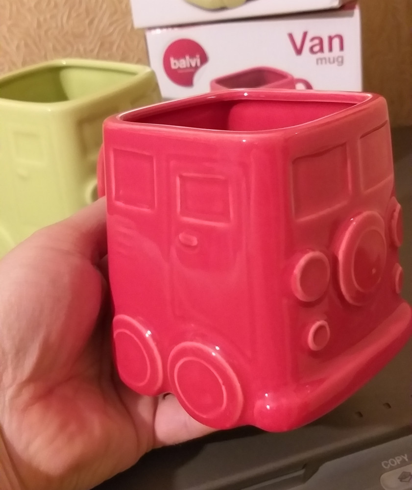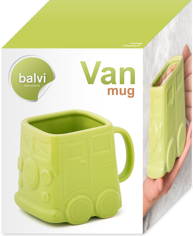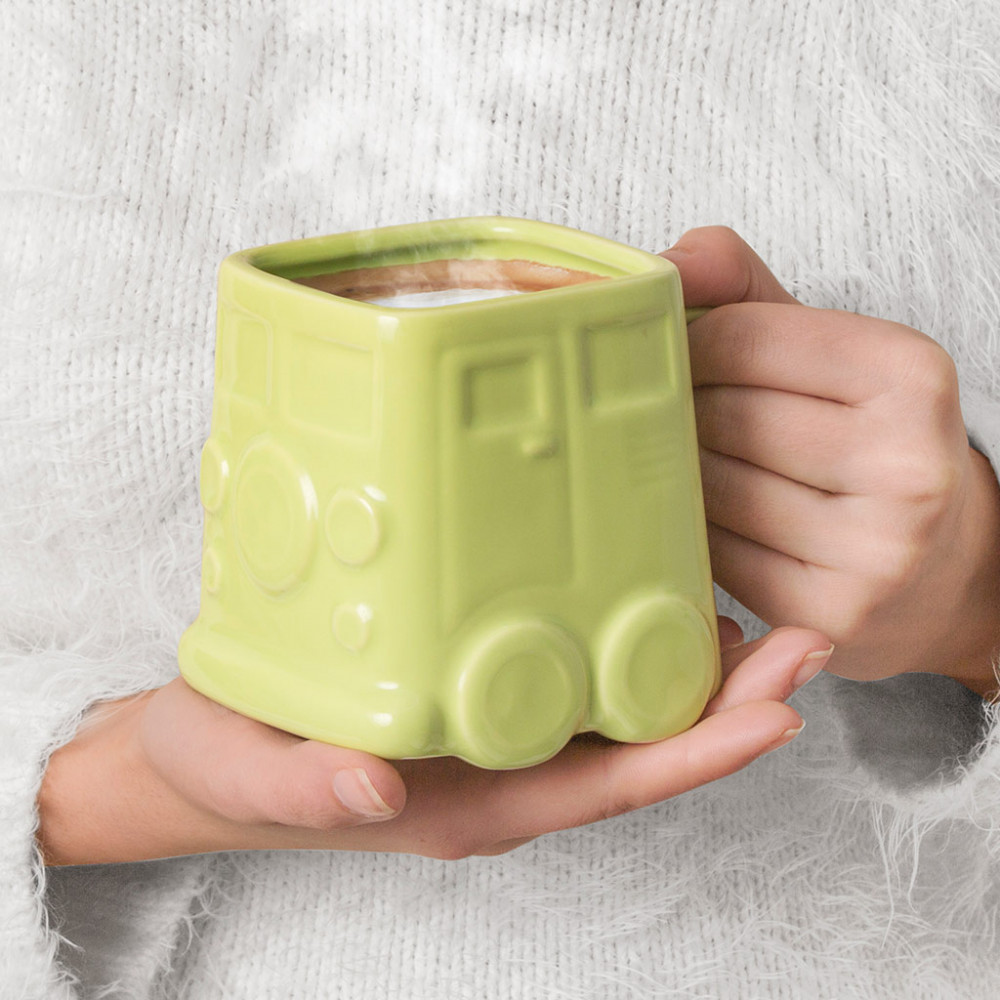 Оригинальная кружка отлично подойдет всем любителям стильных аксессуаров для своей кухни. Кружка выполнена в необычной прямоугольной форме и оформлена в виде забавного хиппи-фургона на колёсах. Коллекционеры и просто любители необычных кружек обязательно оценят данную модель от испанских дизайнеров. Керамический материал обеспечивает необходимую прочность, и способствует тому, чтобы напиток не обжигал, но при этом долго сохранял тепло.