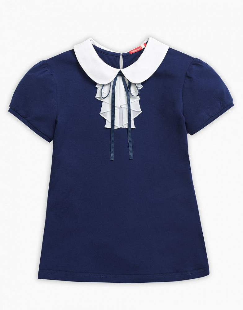 Кофточка сшита хорошо. Маломерка, на худую девочку 8 лет взяли 134 и она оказалась в самый раз, без запаса вовсе. Если бы взяли на размер больше, то была слишком широкой. Ткань не очень понравилась имеет сероватый оттенок, воротник и волан чисто белые.