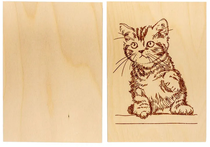 • набор состоит из двух фанер, предназначенных для пирографии. Каждая из них имеет типовой размер 21 × 17 см;