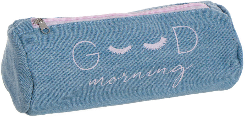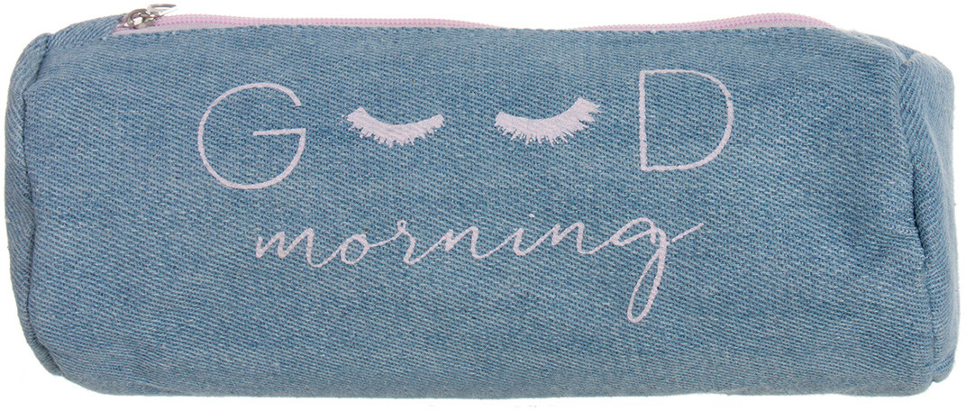 Косметичка изготовлена из полиэстера, который отлично держит форму, не повреждается и долго сохраняет яркость красок. Внешне аксессуар имитирует деним, который находится в тренде самых модных материалов. На лицевой стороне располагается милое изображение с ресничками, что придает аксессуару нежности и игривости.