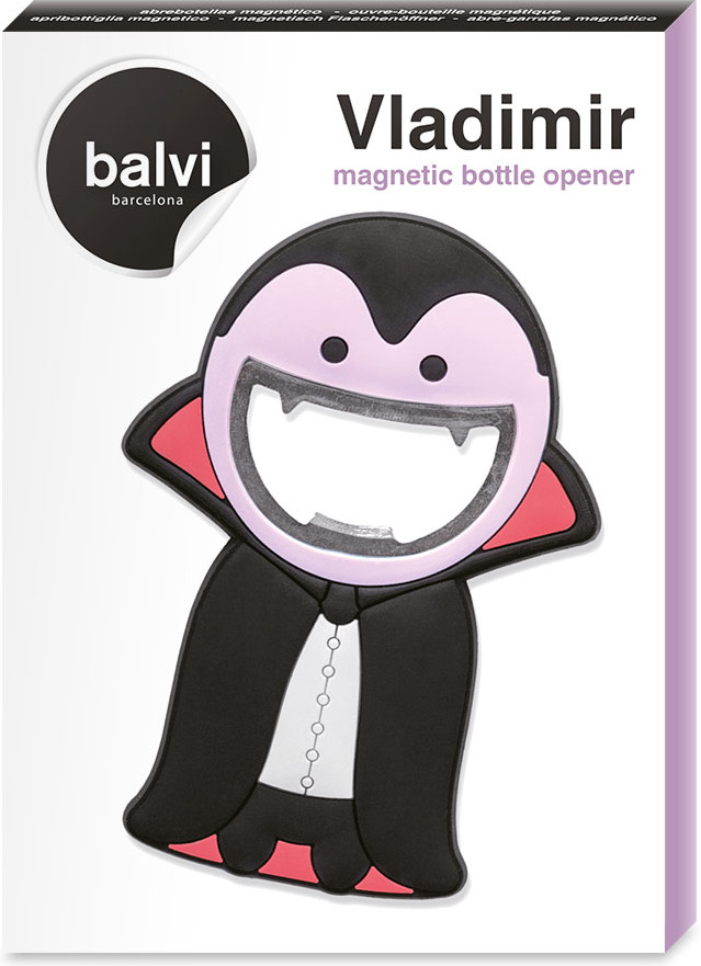 Balvi Открывалка магнитная «Vladimir»В данный момент этот товар отсутствует в продаже. Возможно, у нас найдется аналогичный или похожий товар здесь. Если вы любите забавные аксессуары для кухни, тогда предложение от испанского бренда Balvi специально для вас — это оригинальная открывалка. Она воссоздает образ вампира Дракулы в очень забавном и карикатурном виде. Он не вызывает никакого страха, а только добродушную улыбку. Такую мелочь крайне полезно держать под рукой, потому что одним движением можно снять металлическую крышку и открыть прохладительный напиток. А магнит позволит закрепить открывалку на холодильнике или любой другой металлической поверхности. |