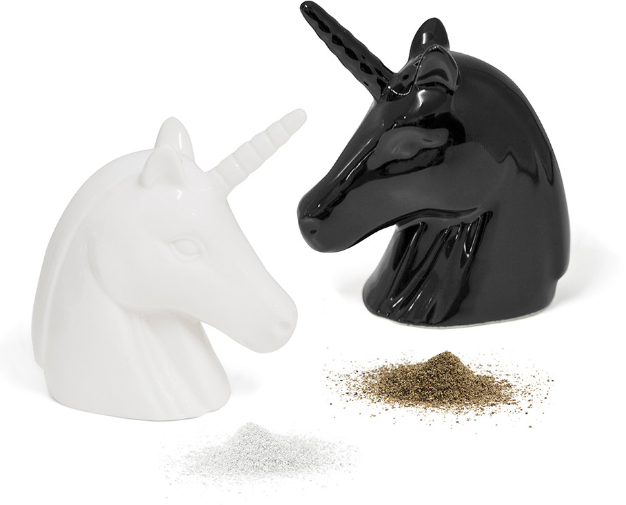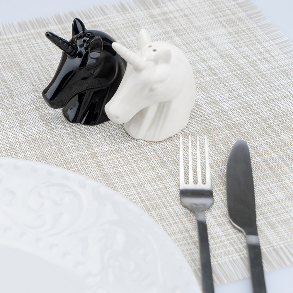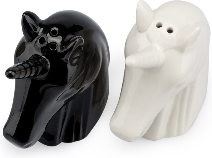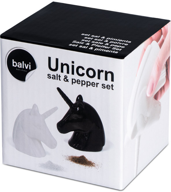 Выбирая аксессуары для кухни, любая хозяйка стремится к тому, чтобы придать пространству индивидуальность и оригинальность. Испанский бренд Balvi подходит к разработке дизайна с учетом различных требований и запросов. Представляем солонку и перечницу, разработанную для нестандартно мыслящих людей. Дизайн предметов представляет собой двух единорогов: белый — для соли, черный — для перца. На дне у них пластиковая пробка, через которую удобно засыпать специи. Набор очень красивый и не похож на обычно принятые предметы кухонного обихода, и именно этим он привлекает внимание окружающих. Данные аксессуары непременно расставят акценты в помещении с любой обстановкой.