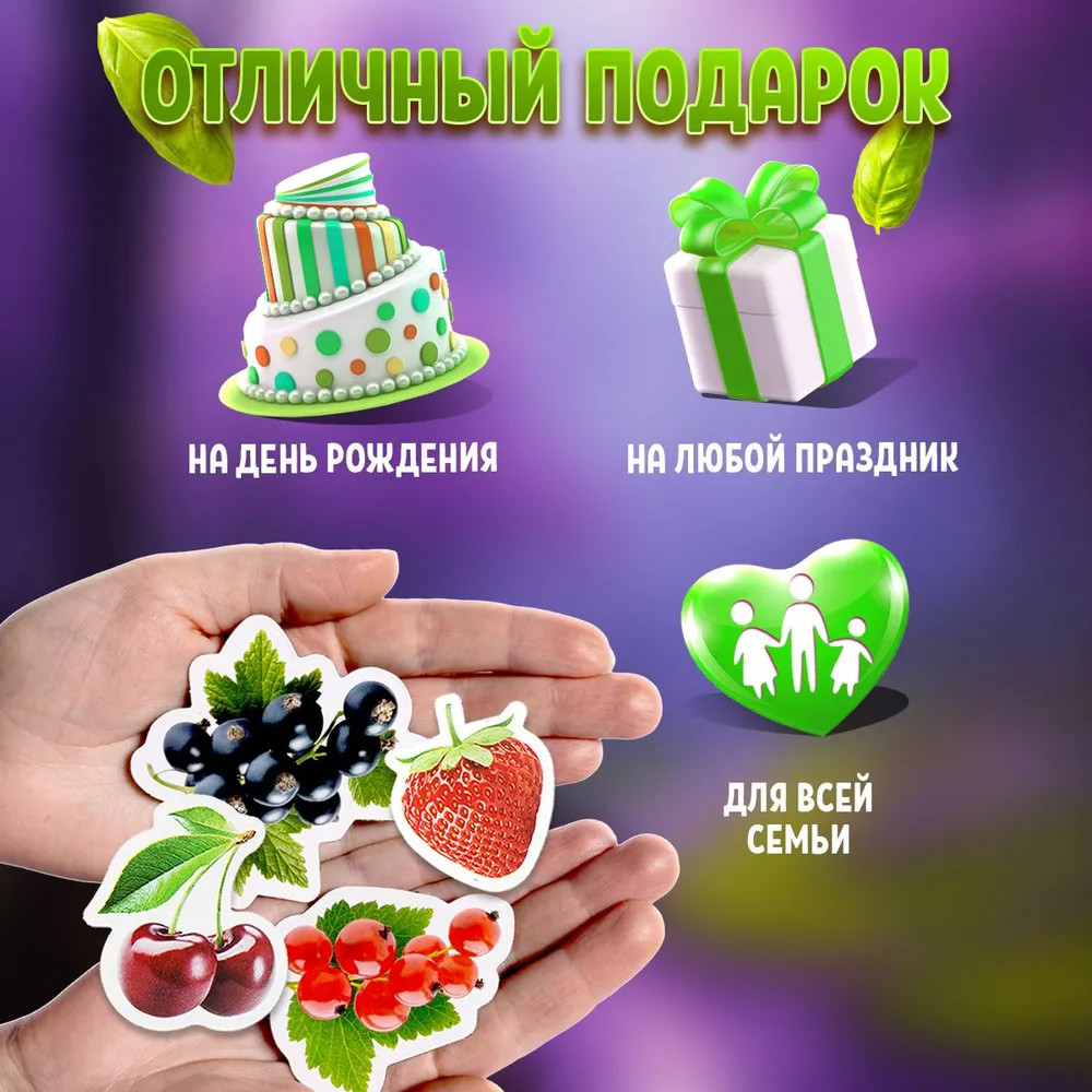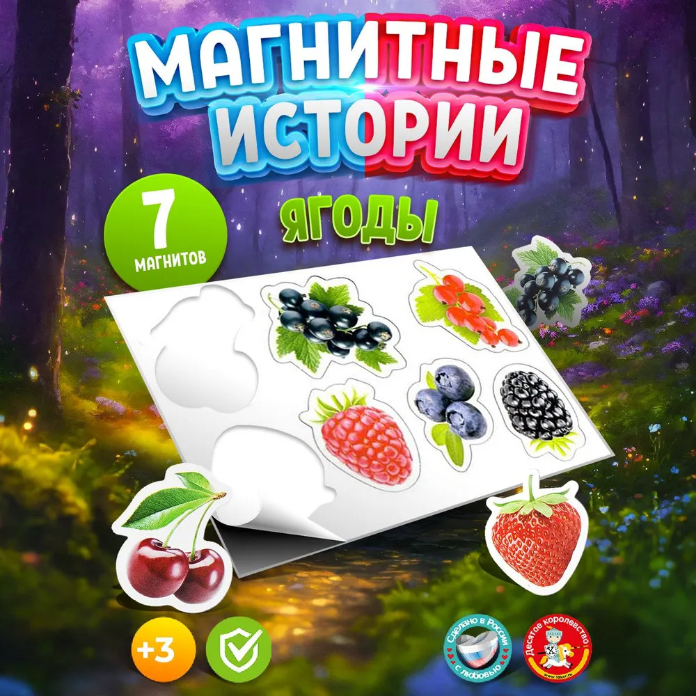 Десятое королевство Магниты «Ягоды»крупные яркие качественные виниловые В данный момент этот товар отсутствует в продаже. Возможно, у нас найдется аналогичный или похожий товар здесь. Серия: Магнитные истории Замечательный набор магнитов из серии «Магнитные истории» непременно понравится ребенку и станет дополнением магнитных элементов для обучающих занятий. Благодаря магнитам дети смогут запомнить 7 видов ягод. А если пополнить свою коллекцию набором «овощи», то игра станет еще интереснее. |