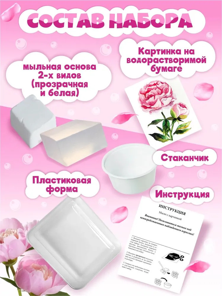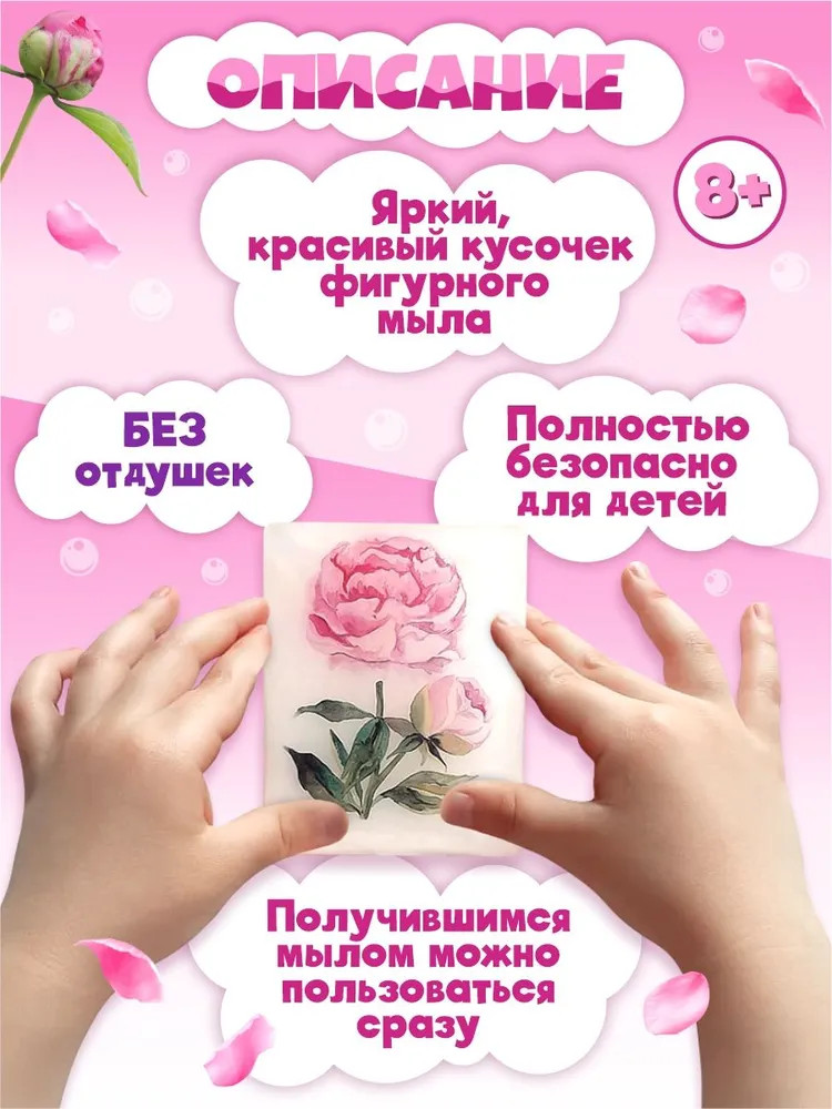 💳 Оплатить за товар можно при получении 🇰🇿 Есть бесплатная доставка по Казахстану от 1 дня 🎁 Копите бонусы с каждой покупки Серия: Рукодельное мыло Набор для изготовления мыла своими руками с картинкой «Розовый пион» входит в серию наборов «Рукодельное мыло». При помощи этого набора для творчества ребенок своими собственными руками создаст кусочек мыла с красивой картинкой розового пиона. Для этого потребуется внимание, ответственность и соблюдение инструкции, что вполне по силам детям от 8-ми лет и старше, а единственным ограничением является контроль со стороны взрослых. |
