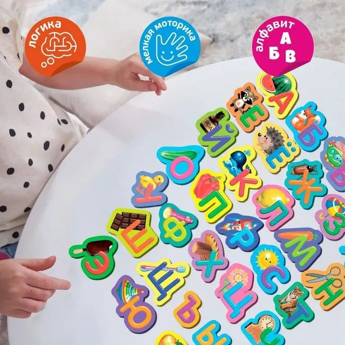 Десятое королевство Игра развивающая «Деревянная азбука на магнитах»деревянная долговечная мутный принт слабая магнитная лента В данный момент этот товар отсутствует в продаже. Возможно, у нас найдется аналогичный или похожий товар здесь. Развивающая игра «Деревянная азбука на магнитах» предназначена детям старше 3 лет для начала изучения букв русского алфавита. Не повторяющиеся цветные начертания букв и веселые картинки не позволят ребенку скучать. С их помощью дошколята учат и запоминают буквы алфавита. Набор не содержит ничего лишнего — все составляющие игры выполнены из безопасных материалов и окрашены в яркие цвета — такая игра обязательно привлечёт внимание малыша. Во время полезных и весёлых занятий, ваш ребенок будет развивать логику, ассоциативный ряд, моторику рук и, в скором времени, научится читать. |