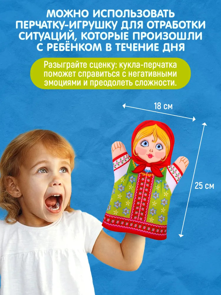 Кукла-перчатка яркая, сшита аккуратно. Докупила несколько штук в дополнение к набору колобок, теперь можно ставить несколько сказок. Да и самим сочинять. Спасибо большое.