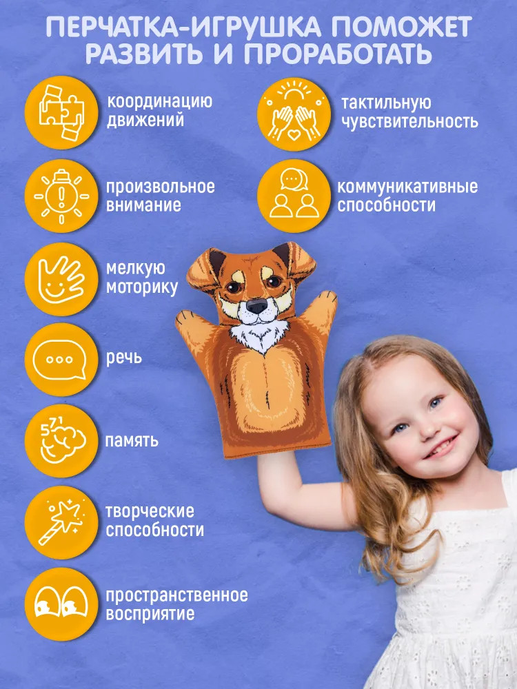 отличная кукла перчатка. яркая, четкая. на женскую ладонь отлично подходит. Внучке 10 месяцев очень нравится смотреть, слушать и играть с этими перчатками. 😍