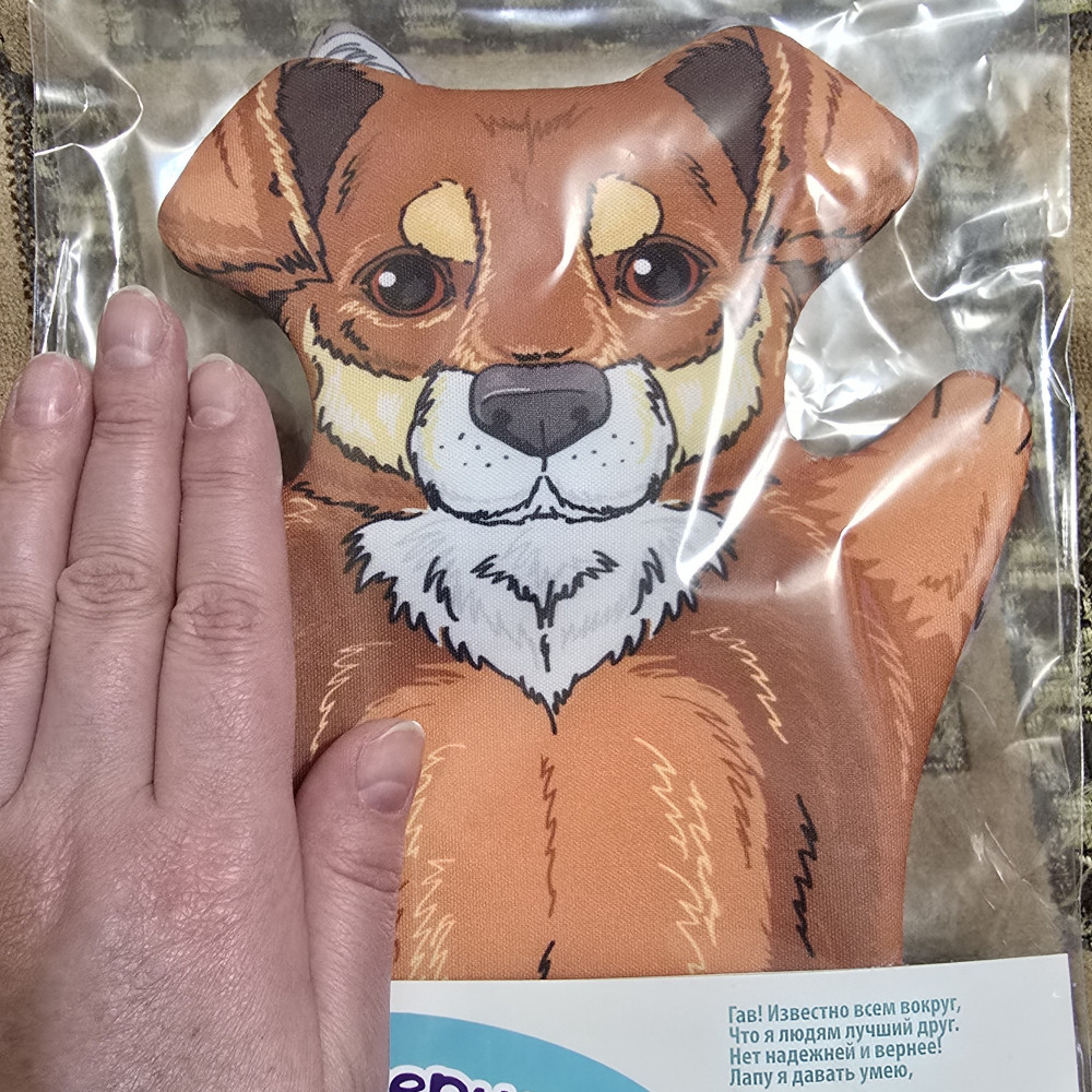 отличная кукла-перчатка. Яркая хорошо прорисовано. На женскую ладонь отлично по размеру. Внучке 10 месяцев очень нравятся.
